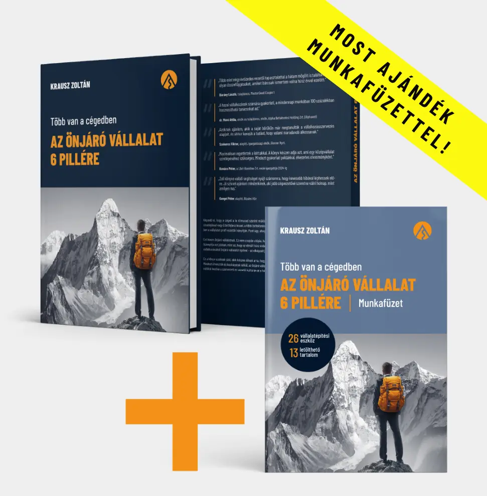 Most egy korlátozott ideig elérhető, különleges ajánlattal várunk: a könyv mellé ajándékba kapod a 6 990 Ft értékű munkafüzetet, és EXTRA bónuszként díjmentes meghívást kapsz a 2026 első három hónapjában, havonta megrendezett zártkörű online konzultációkra is ahol személyesen válaszolok az önjáró vállalat építésével kapcsolatos kérdéseidre.